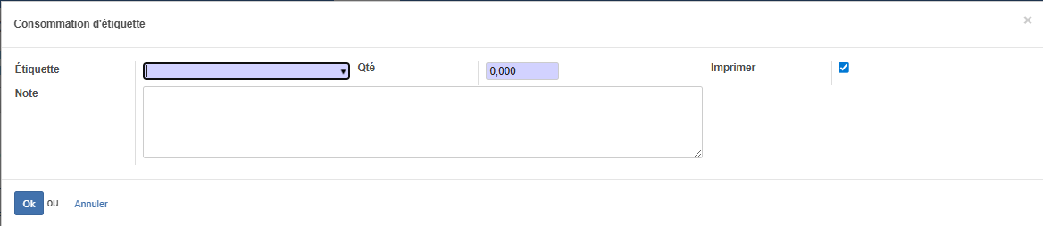 Logistique>Actions d'étiquettes>Consommation d'étiquette