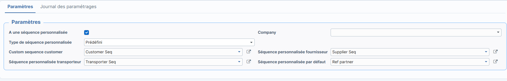 - Utiliser une séquence prédéfinie en fonction du type de partenaire (Client, Fournisseur, transporteur..)