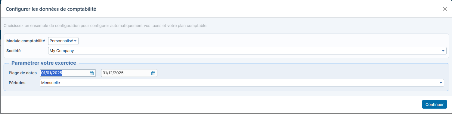 Après installation de la Comptabilité, le wizard suivant va s'afficher :