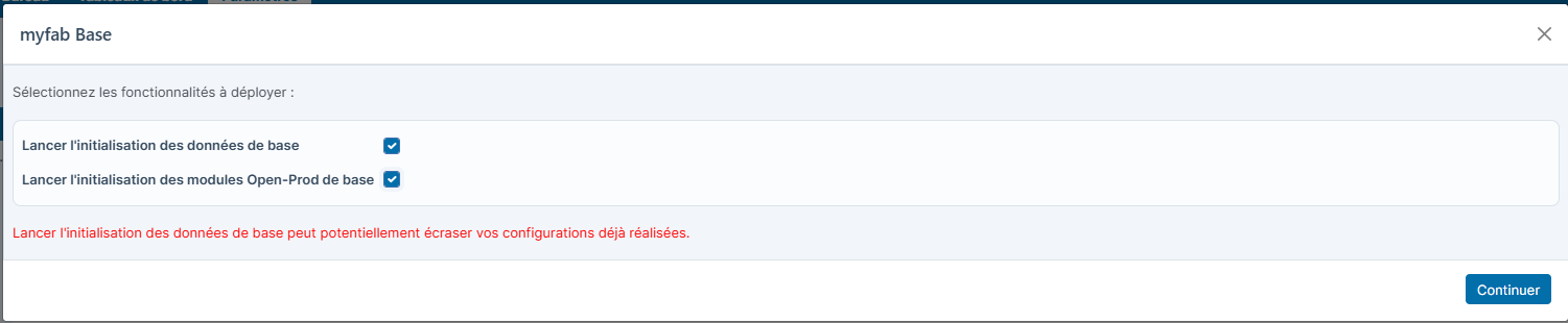 Lancer l'initialisation des modules Open-Prod de base va lancer l'installation de modules essentiels pour une configuration standard d'Open-Prod.